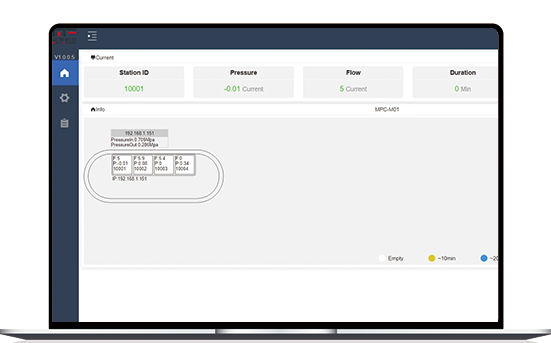 Web UI界面可手动调节比例阀,实时控制气流量、可调节温湿度 流量 压力监控范围、亦可手动控制电磁阀的开关等操作。